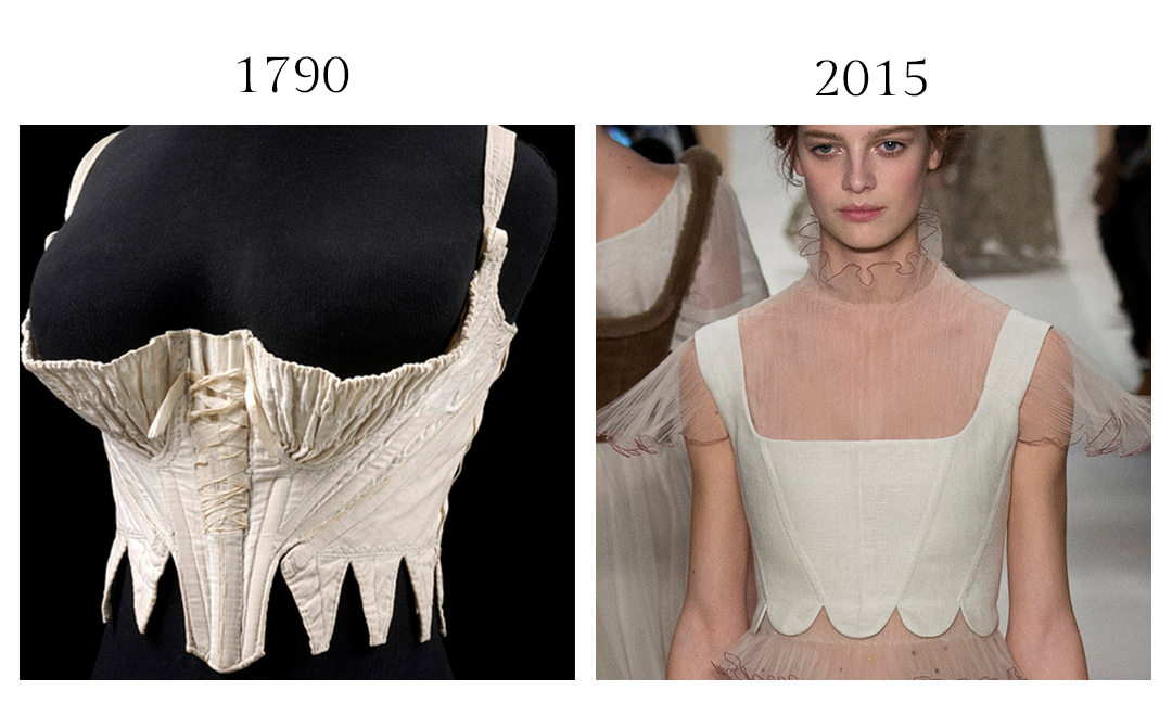 Rivisitato naturalmente, ma nella struttura anche filologico direi! Valentino ha estrapolato dal cilindro della storia del costume questo singolare indumento, tanto odiato dalle donne del passato, ma allo stesso tempo indispensabile per ingentilire la figura femminile secondo i canoni estetici imposti alla donna nei secoli. Dal XVI secolo fino ai primi decenni del XX secolo (con una sola breve pausa dopo la Rivoluzione Francese) le donne hanno sempre indossato corsetti intimi che ne deformavano il busto. I primi corsetti di moda spagnola erano addirittura in metallo! Si, delle gabbie in metallo che imitavano le armature militari e che rendevano visivamente il busto femminile di forma conica o cilindrica.