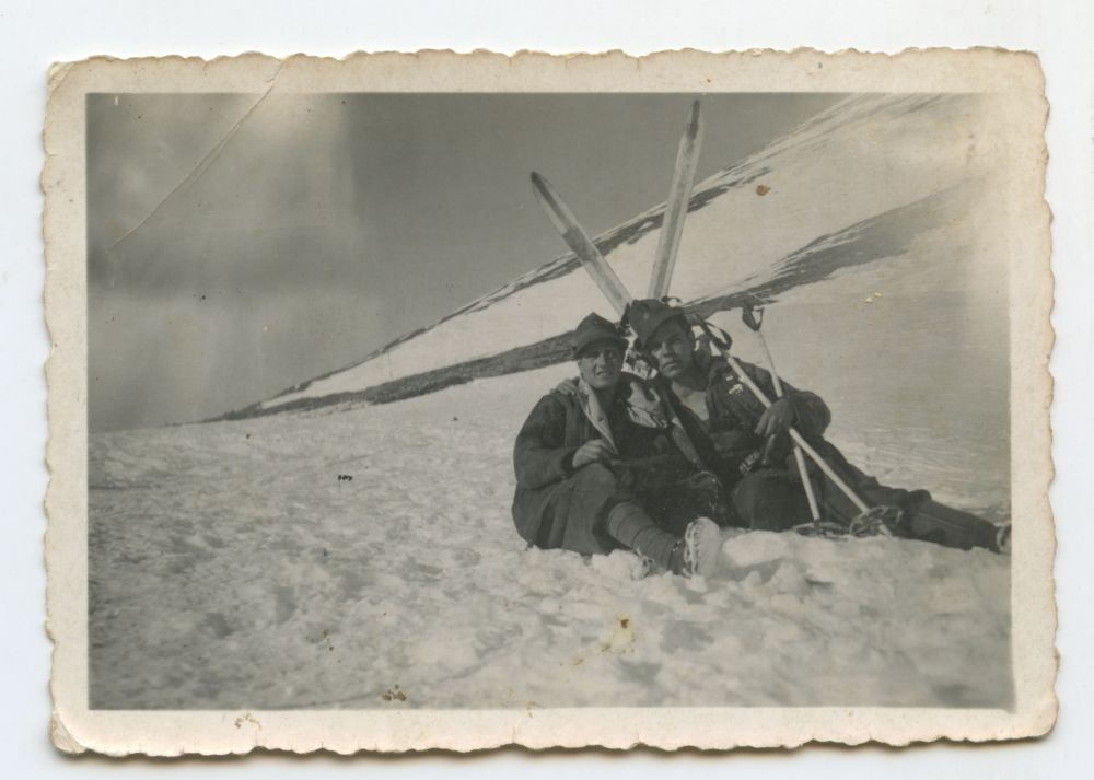 Fine 1944, a Bardonecchia/Frejus con, alla sua destra, un compagno d’armi del corpo degli alpini.
